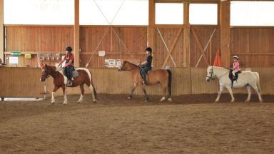 > Springstunden finden auf dem großen Außenplatz und im Winter in der Reithalle statt